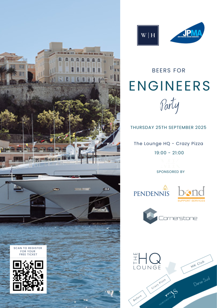 ENGINEERS! – if you are in/near Monaco on Thursday 25th September, register now to attend our second annual ‘Beers for Engineers’ event. We’re proud to host this event alongside Wilson Halligan, and thanks go to our 2025 sponsors – Pendennis, Cornerstone Crew Management & Bond Support Services.